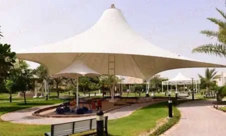 solusi tensile structure modern untuk carport, teras kafe, selasar sekolah, halaman masjid, kolam renang, hingga area publik.